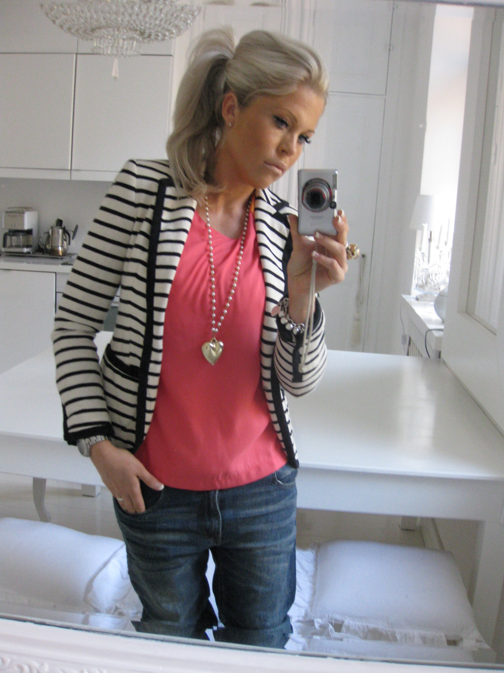 MY OUTFIT; BLOUSE/ GINA TRICOT, HEART-NECKLACE/GINA TRICOT, JEANS/H&M AND BLAZER/ZARA.