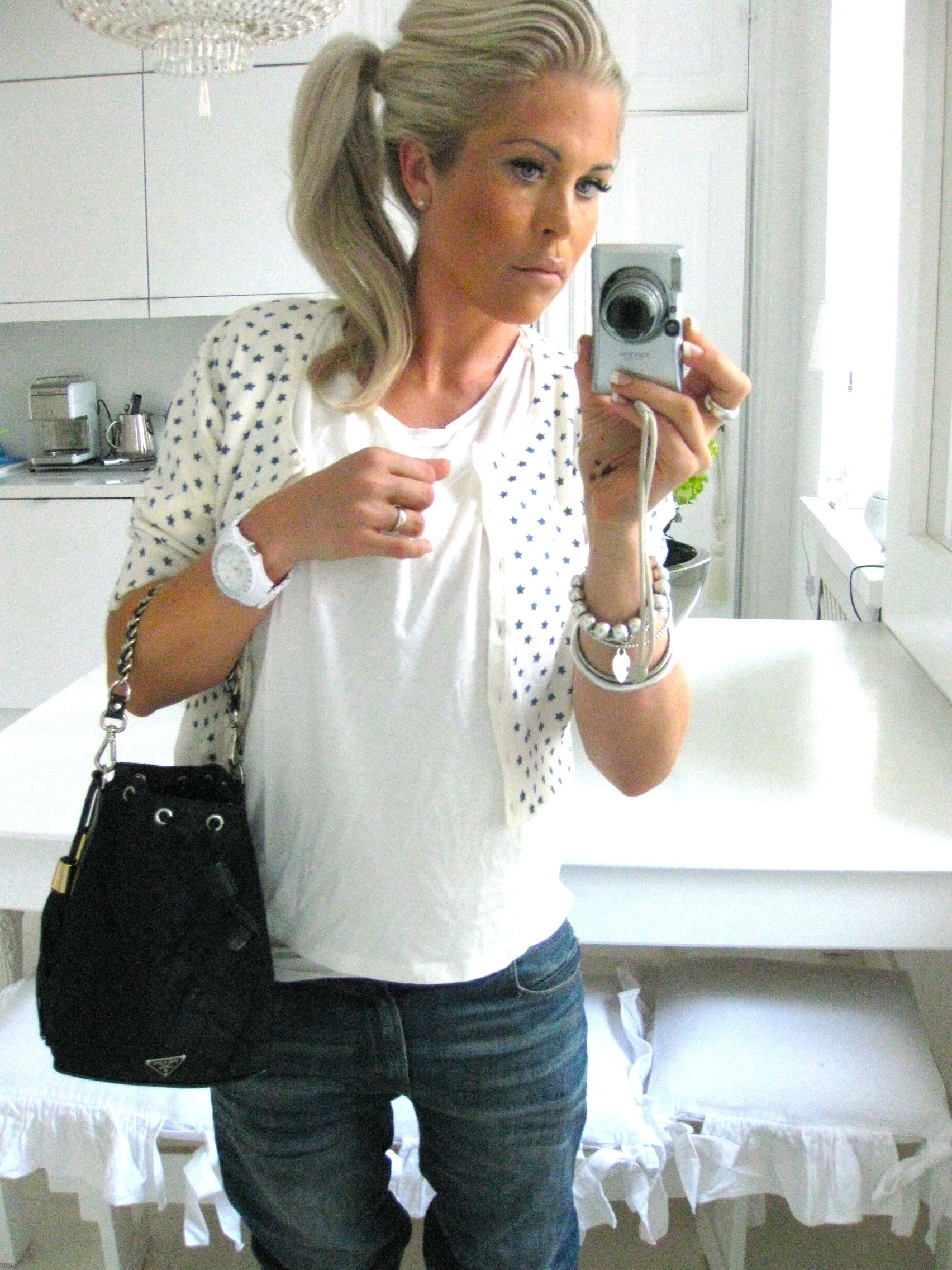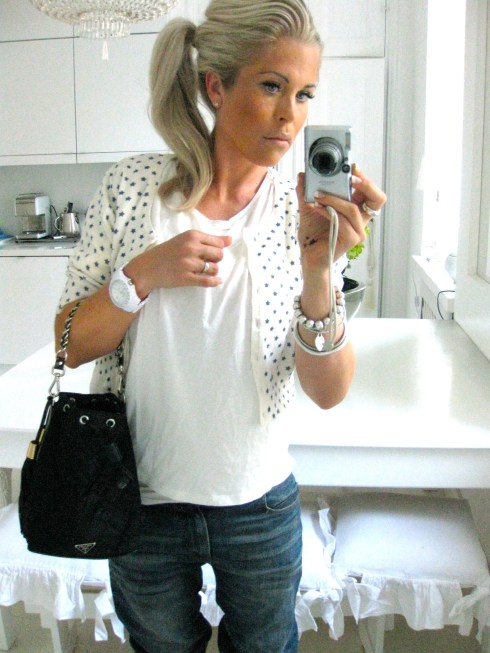 MY OUTFIT FOR A DRIVE; CARDIGAN/ MAMALICIOUS, JEANS/ H&M AND PURSE/ PRADA