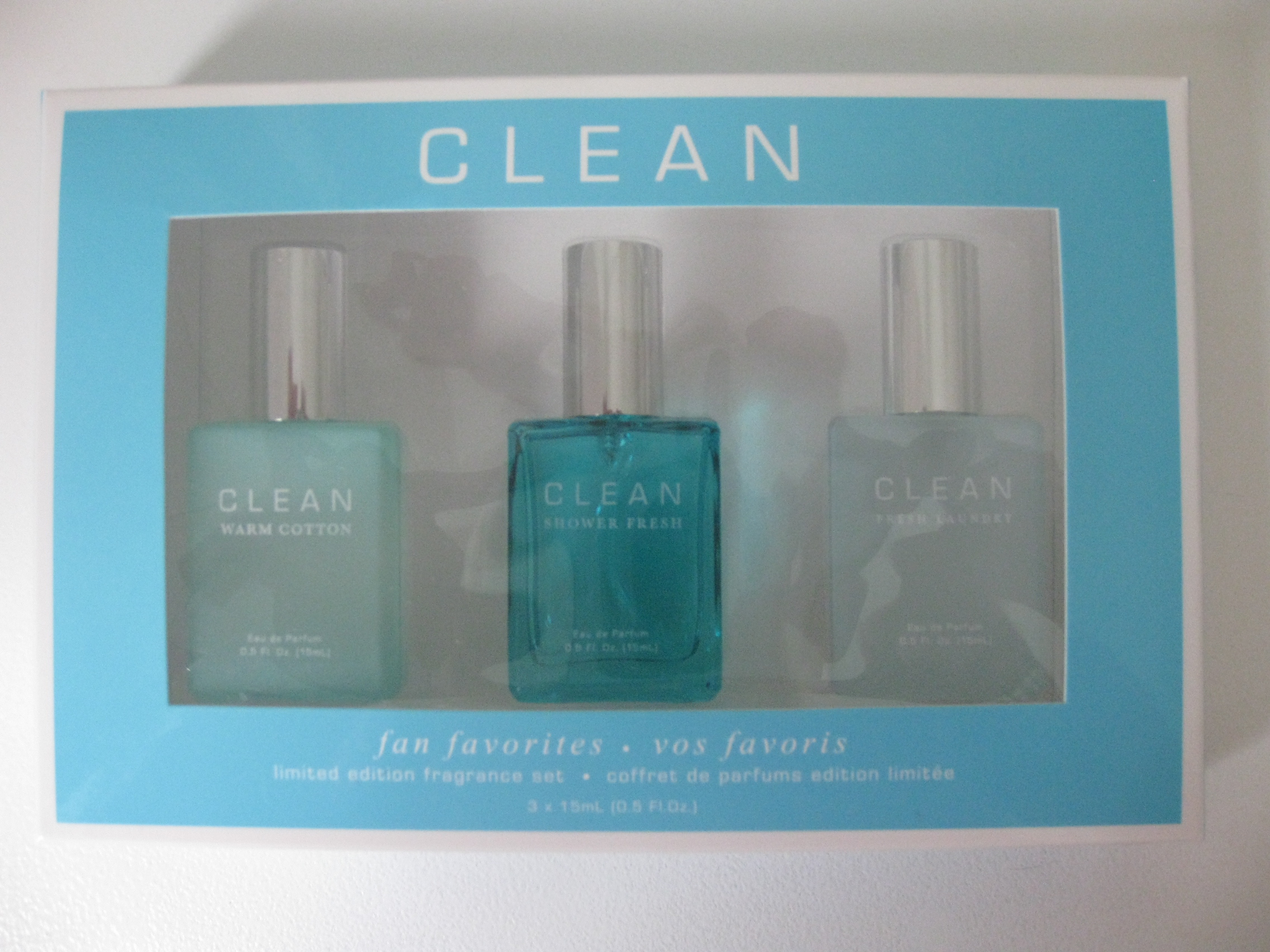 I LOVE SCENTS THAT ARE FRESH!!! SINCE MY FAVOURITE SCENT DOLCE GABBANA LIGHT BLUE WAS ALMOST EMPTY, I DECIDED TO BUY THIS SCENT CALLED CLEAN, THAT I HAVE BEEN TALKING ABOUT FOR YEARS BUT NEVER GOT IT BEFORE. I FOUND THIS PACKAGE OF MY THREE FAVOURITE CLEAN SCENTS IN PERFECT PURSE SIZES.