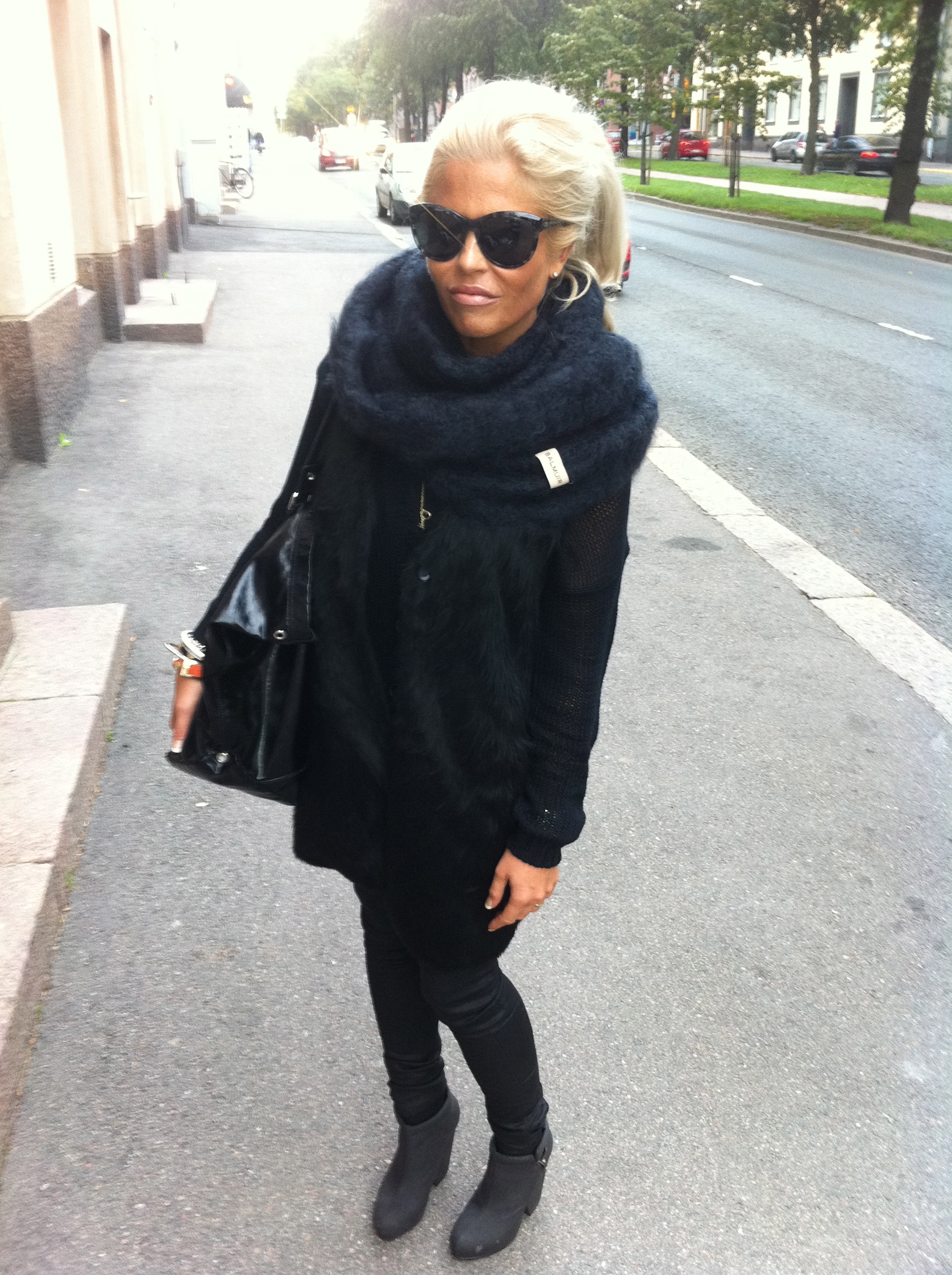 MY WORKING OUTFIT: DARK BLUE MAXI SWEATER FROM HERE, STRETCH JEANS FROM HERE AND BOW NECKLACE I MADE MYSELF.