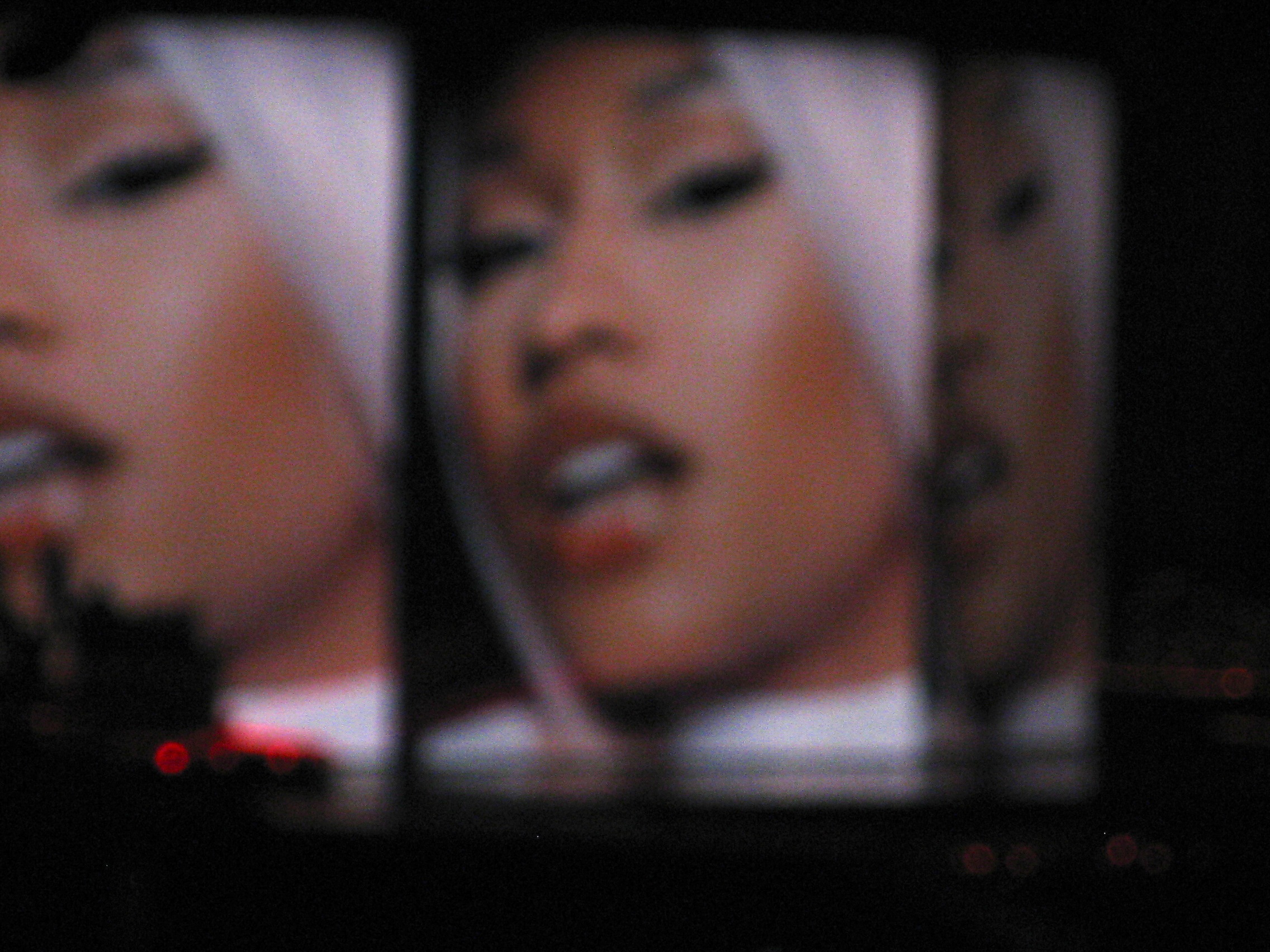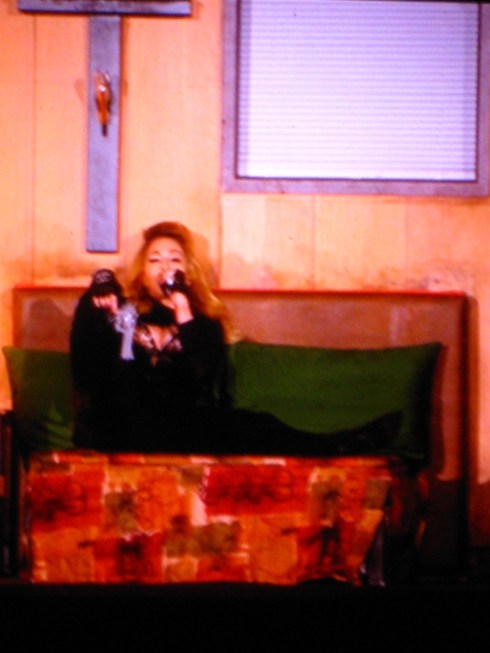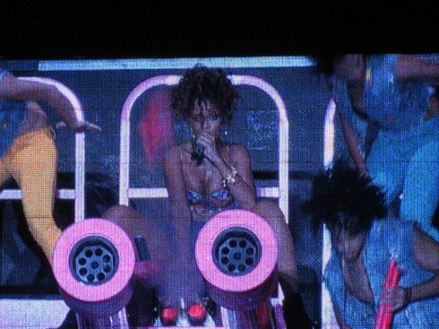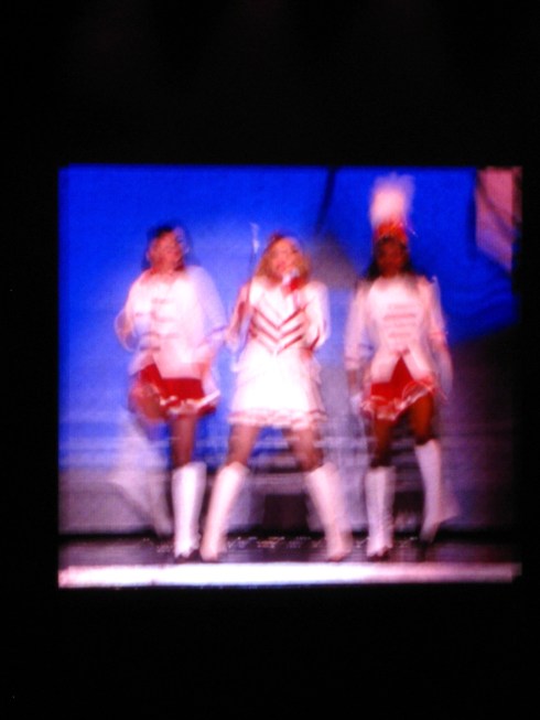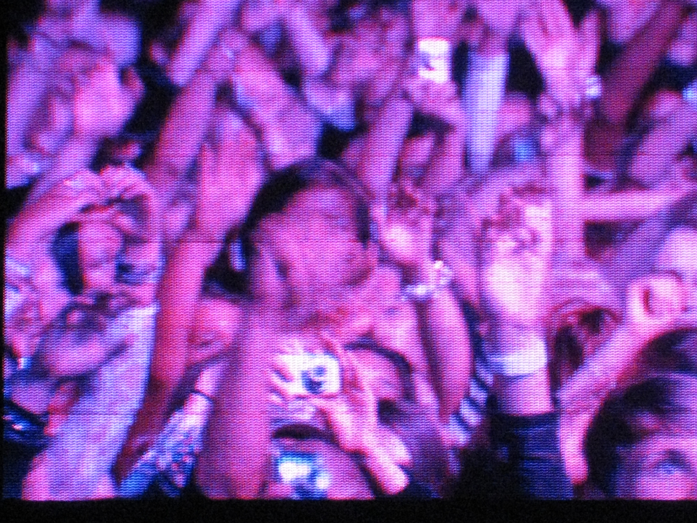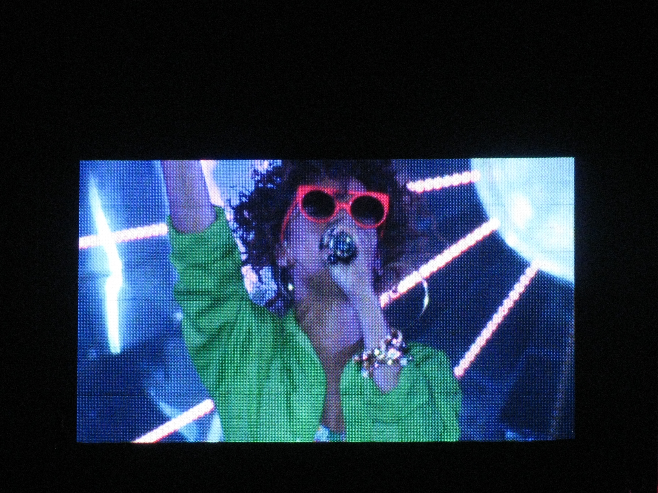 AFTER HALF AN HOUR WE STILL HADN´T HEARD ANY MUSIC, ONLY BANG BANG, AND SOME WEIRD GROANING AND MOANING….OKAY, THEN IT WAS CHANGED `SUPRISINGLY`INTO LOVE,PEACE AND CHAOS OF PICTURES AND EVERYTHING ON THE SCREEN LIKE IN THIS DRUG FUELLED MOVIE CALLED TRAINSPOTTING…. WE WERE DISAPPOINTED…BUT WHEN SHE DECIDED TO SHOW HER ASS TO THE CROWD, THAT WAS THE BREAKING POINT FOR US, WE DECIDED THAT WE HAD SEEN ENOUGH OF THIS FREAK SHOW.