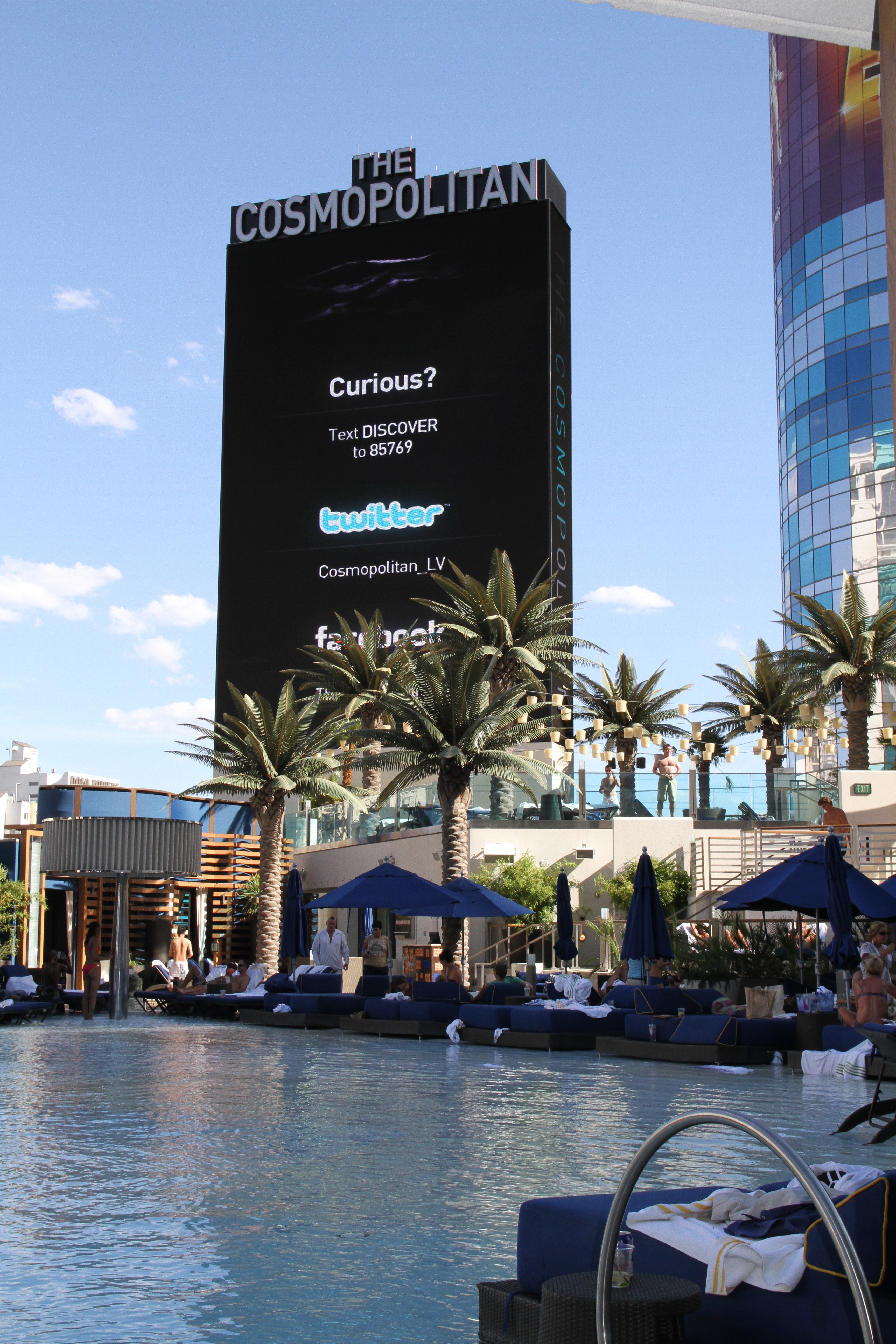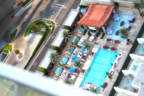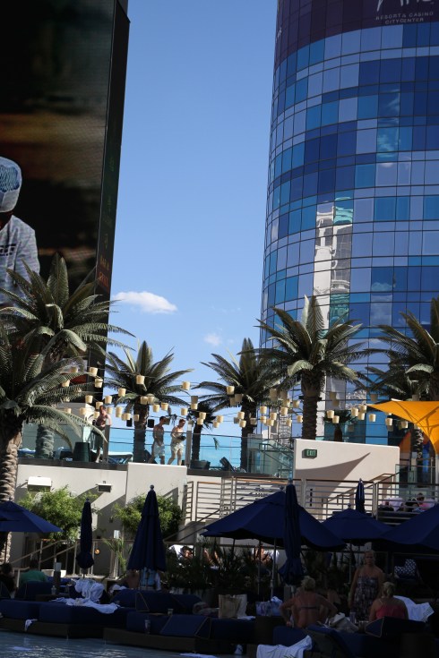 THE VIEW IS FROM OUR BALCONY, THERE IS ONE OF THE POOL AREAS, THE PARTY POOL WHICH IS THE COOLEST DAY AND NIGHTCLUB CALLED MARQUEE…WHICH IS ALSO POPULAR CELEBRITY HOT SPOT….