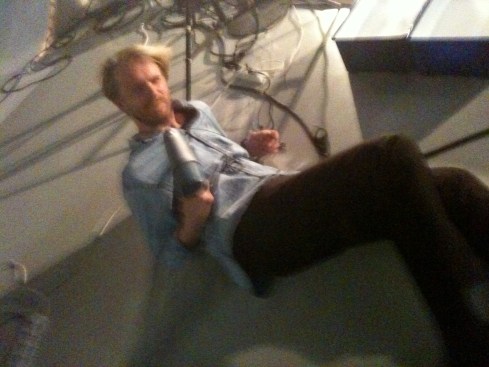 …HERE AWESOME STYLIST JANIC LEINO BLOWING ON HIS HAIR AND DRY ICE….