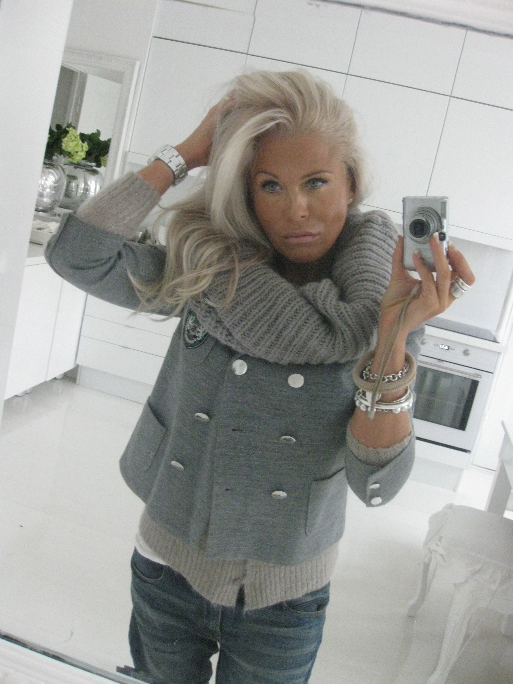 MY WORKING OUTFIT: DARK BLUE MAXI SWEATER FROM HERE, STRETCH JEANS FROM HERE AND BOW NECKLACE I MADE MYSELF.