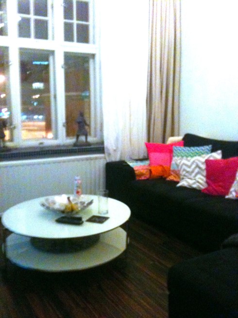 MY FRIENDS LIVING ROOM AFTER…..LOVELY JUGEND WINDOWS ARE POPPING OUT BY KEEPING FULL AND LAYERED CURTAINS ON THE SIDE, BRIGHT COLOURED PILLOWCASES SPICED WITH BEIGE AND WHITE FRESHEN UP THE ROOM, BRING BALANCE AND MAKES A LIGHTER AS WELL AS MORE TRENDY MODERN IMPRESSION.