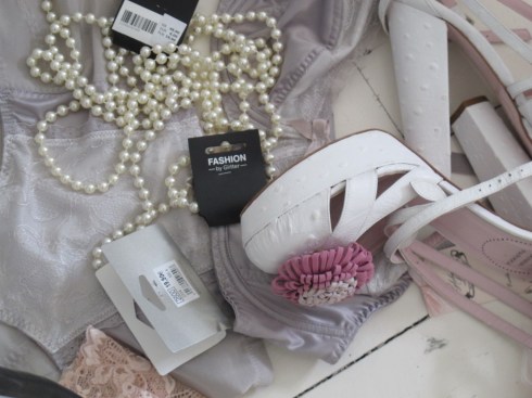 Luonnonvalkoinen pitsijakku, valkoinen tunikamekko pitsihelmalla, valkoiset rintaliivit ja,valkoiset satiinishortsit pitsilahkeilla, Kappahl/Marsaana Communications / 09 2522 6200 /www.kappahl.fi