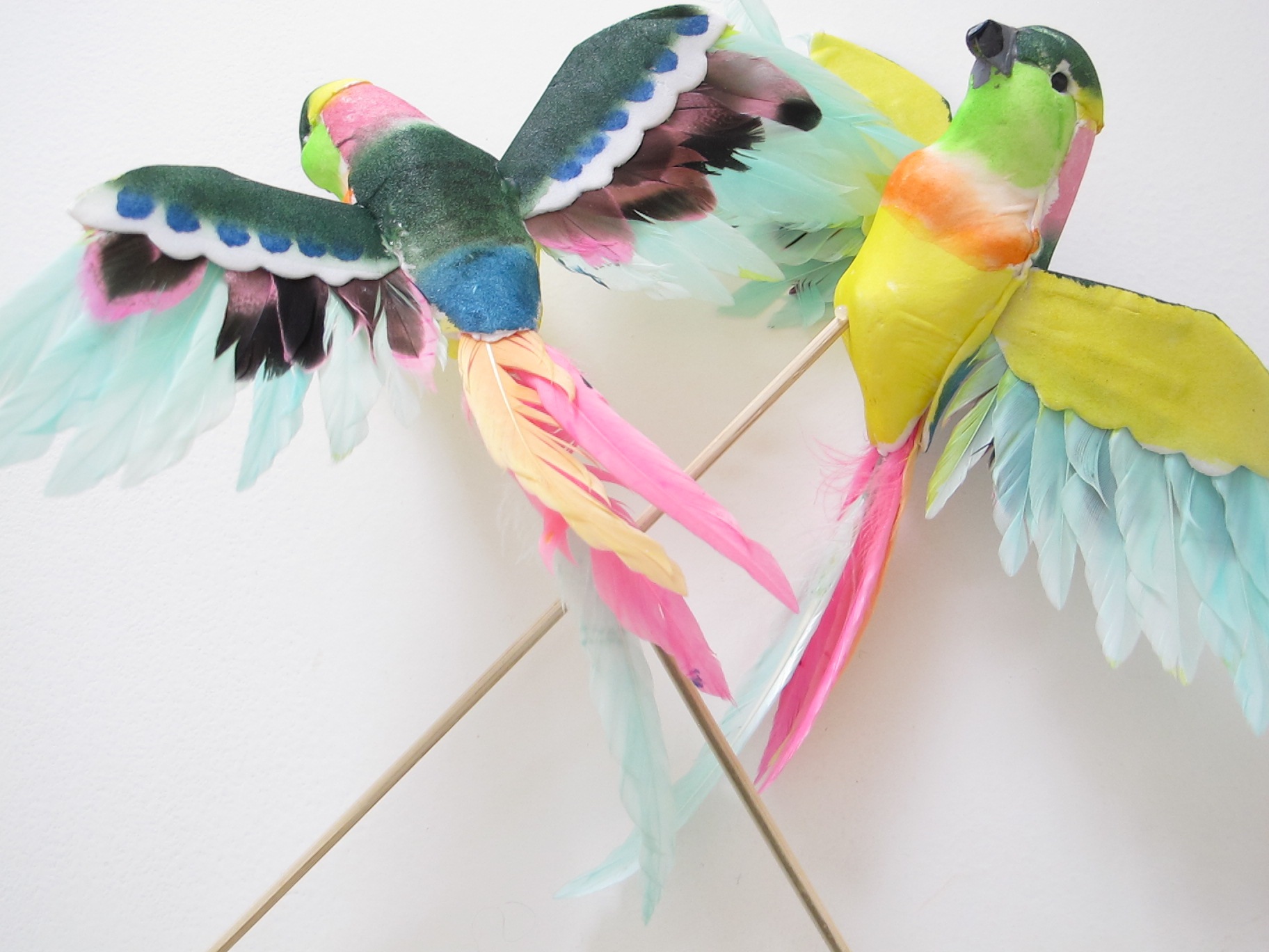 MY FUNNY FRIEND DECIDED TO PIMP OUR CHANDELLIER WITH THOSE CUTE LITTLE PARROTS….