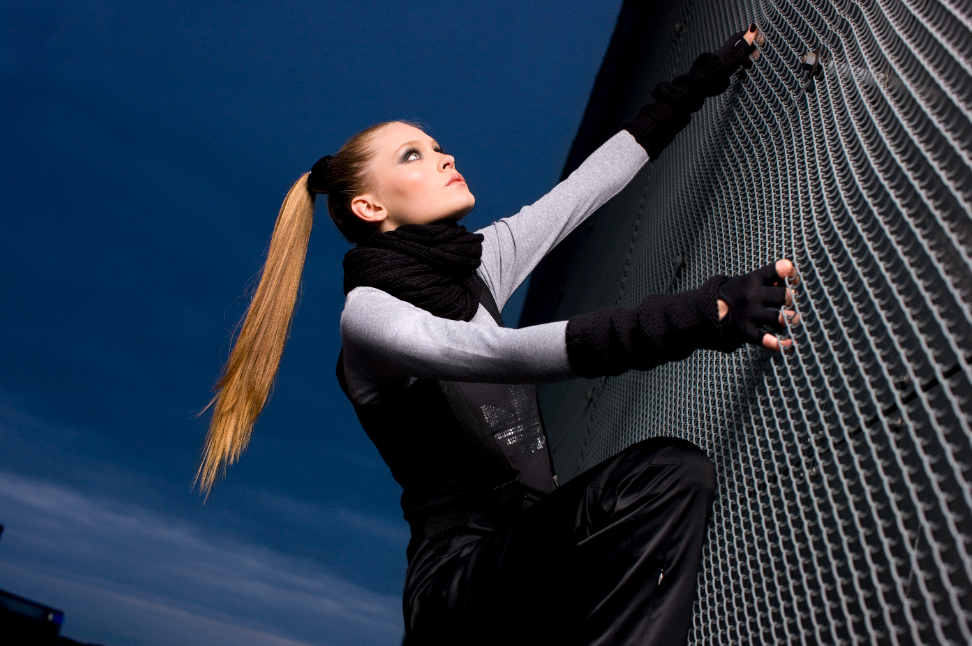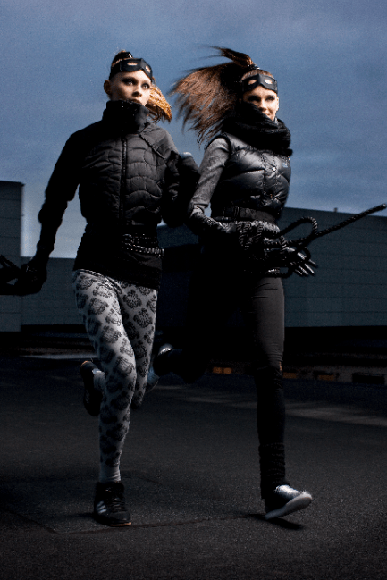 CATWOMEN THEMED SPORTWEAR PHOTOSHOOT ON THE ROOF FOR THE FIT MAGAZINE. PHOTOGRAPHER JAN LÖNNBERG AND MAKEUP AND HAIR KATJA TEINILÄ.