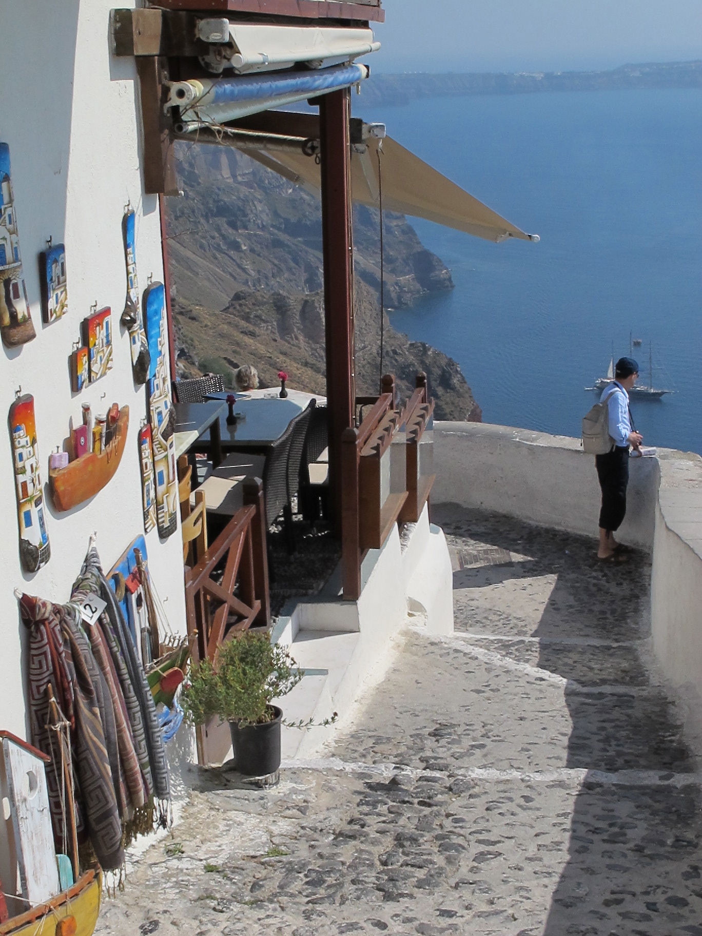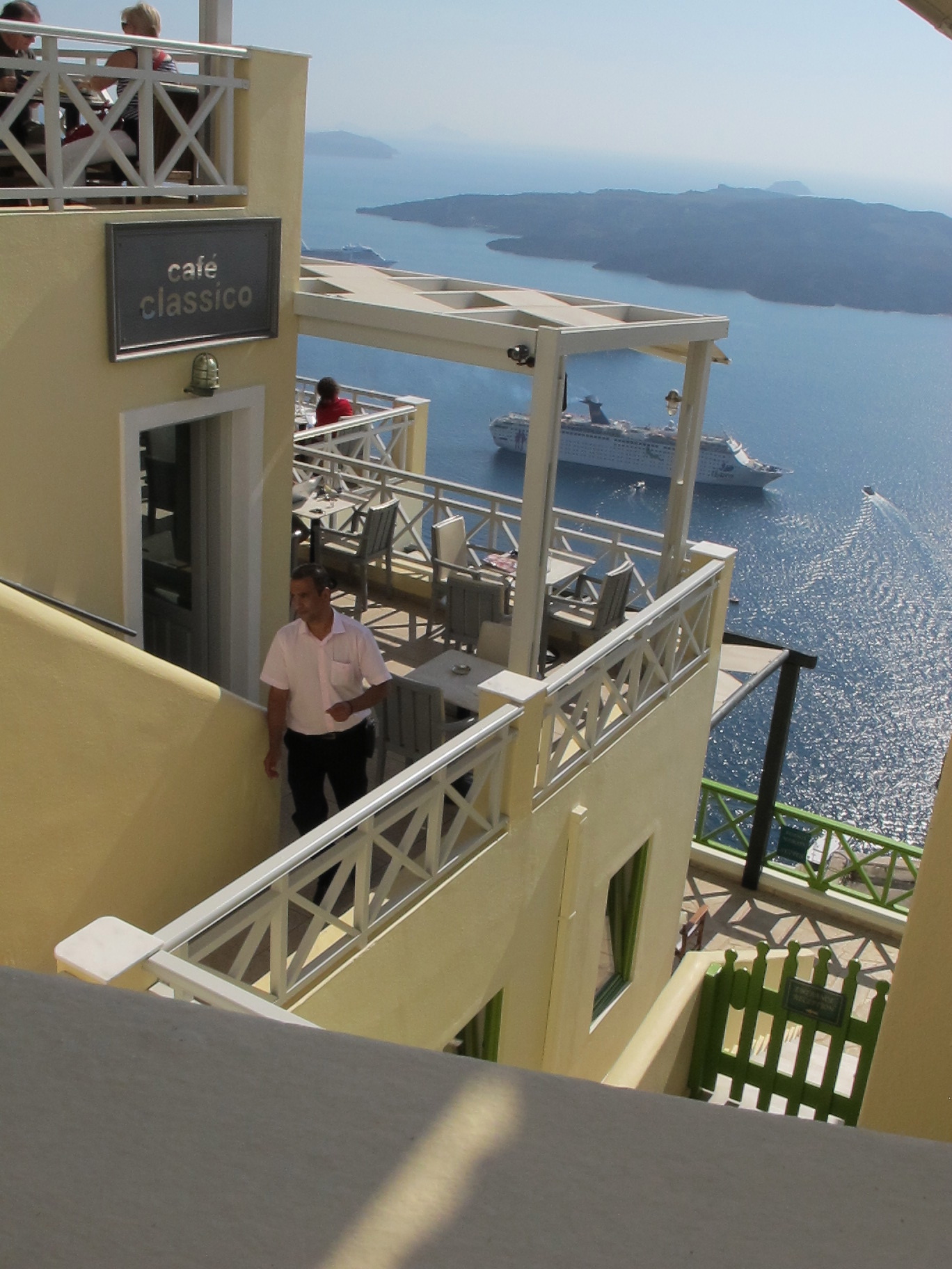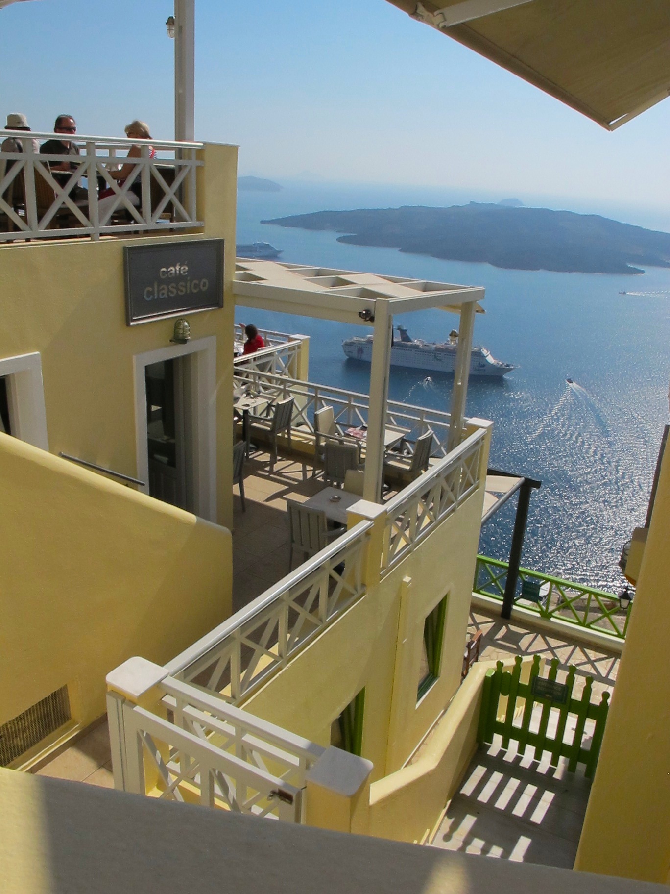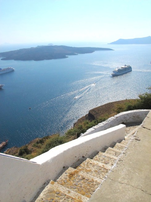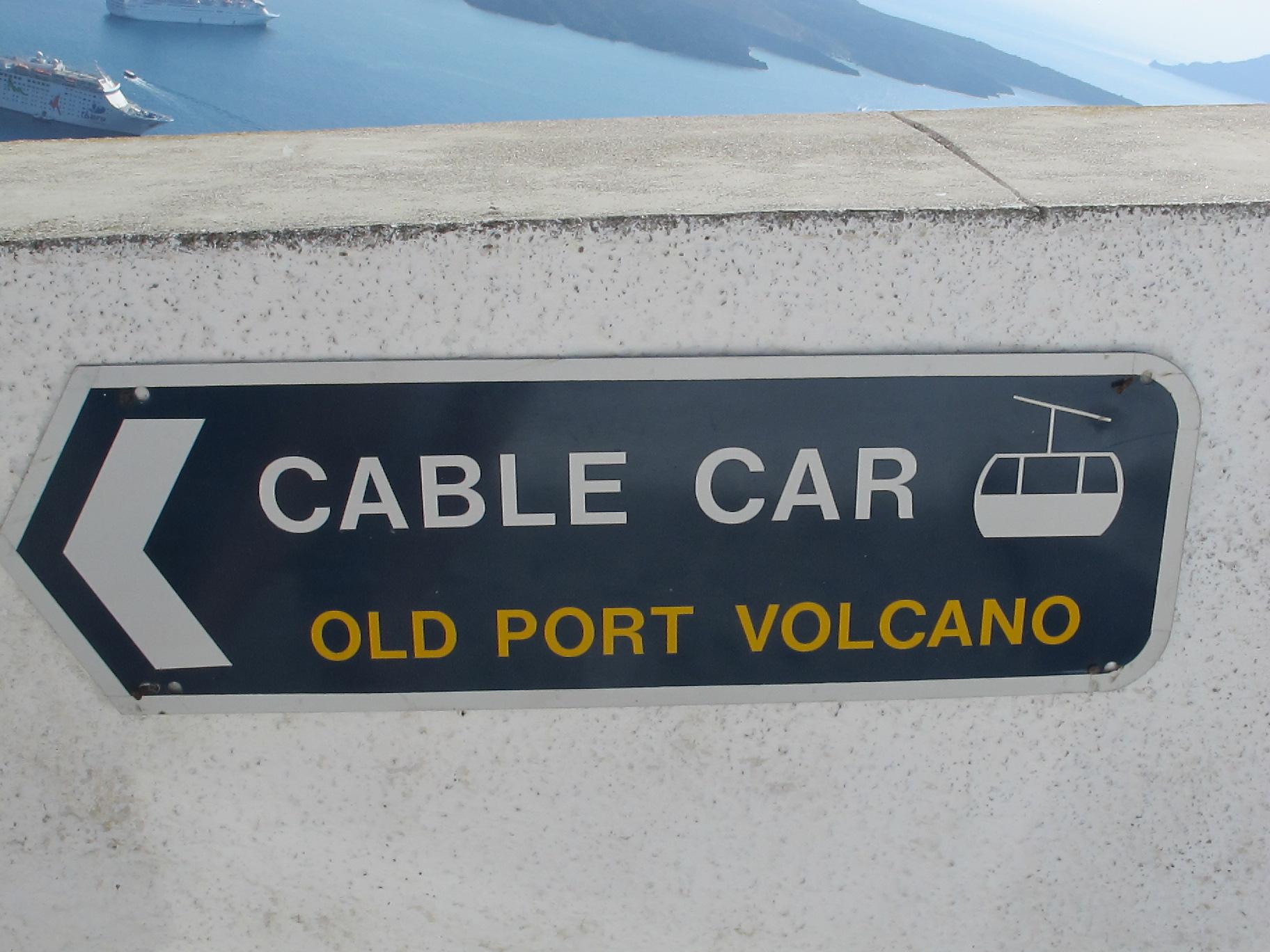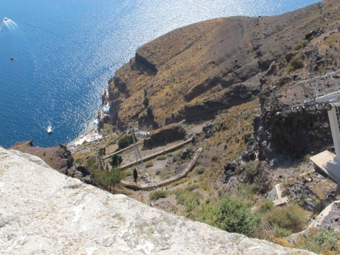 IF YOU ARE LOOKING FOR A NICE WORKOUT WITH STUNNING VIEWS THERE ARE 600 NUMBERED STEPS YOU HAVE TO WALK DOWN AND UP TO REACH THE OLD PORT VOLCANO, BUT IF YOU ARE LOOKING FOR A EASY WAY DOWN OR UP YOU CAN TAKE A RIDE WITH CABLE CAR OR MULE….I PERSONALLY THINK CABLE CAR IS BETTER CHOICE, SINCE I FEEL BAD FOR POOR LITTLE MULES…..