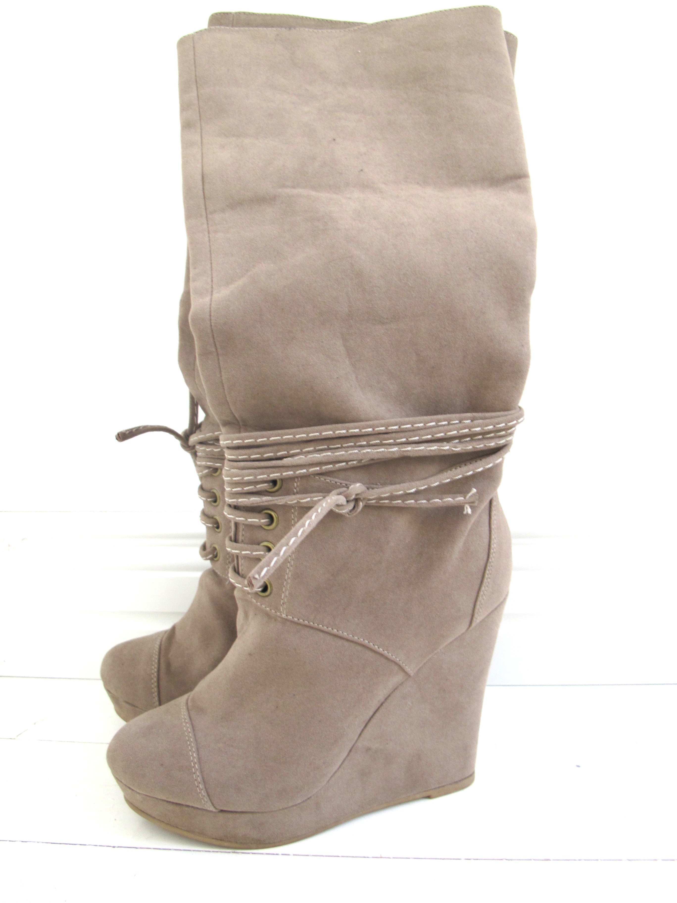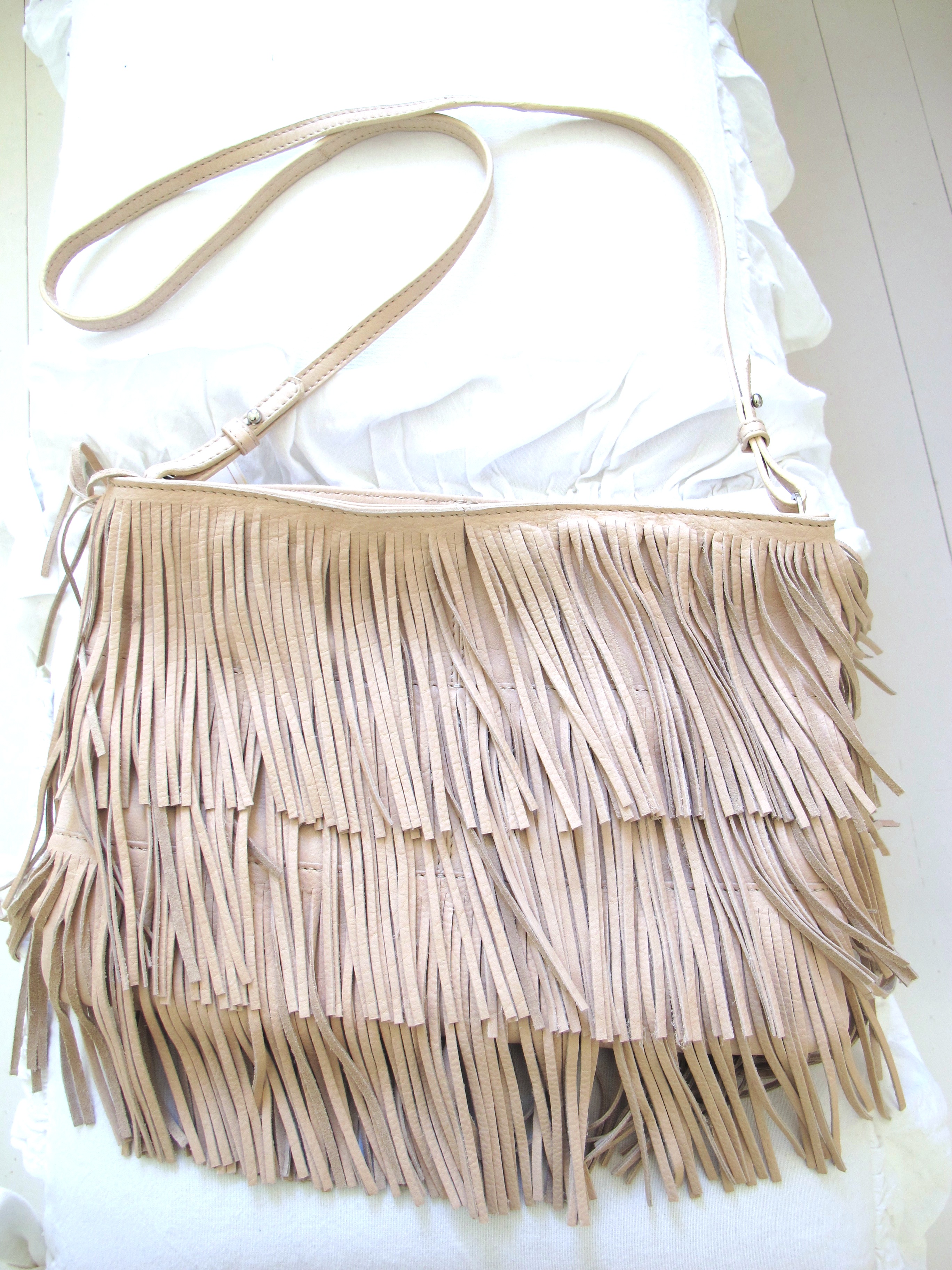 LOVELY BEIGE FRINGE PURSE FROM HERE AND WEDGE NUDE BOOTS / BLANCO.