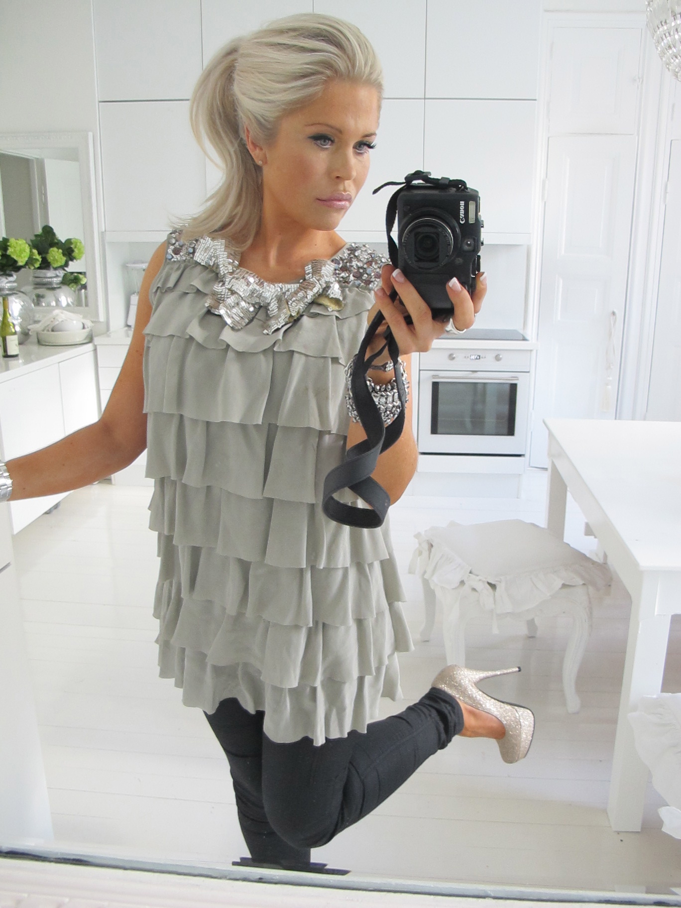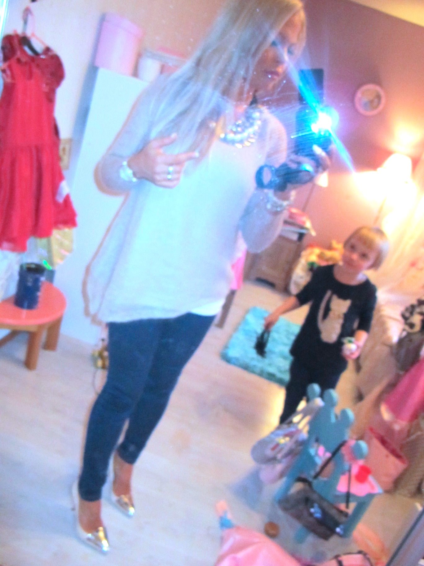 MY PARTY OUTFIT; SILK FRILL DRESS FROM HERE, SEQUIN BOWS AND BLACK STRETCH PANTS FROM HERE.