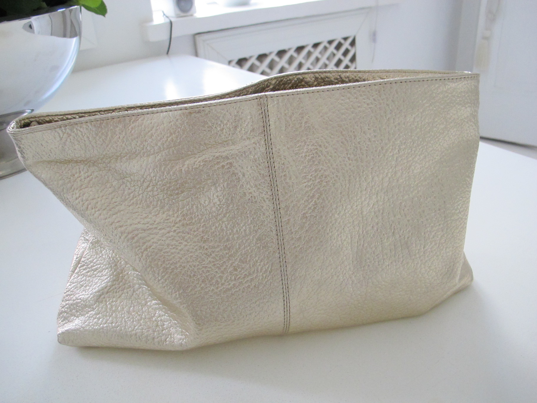 PALE GOLD TONED LEATHER CLUTCH FROM HERE.