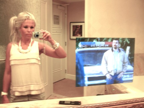 AND OF COURSE AWESOME ELECTRIC MIRROR WITH TV IN THE BATHROOM….