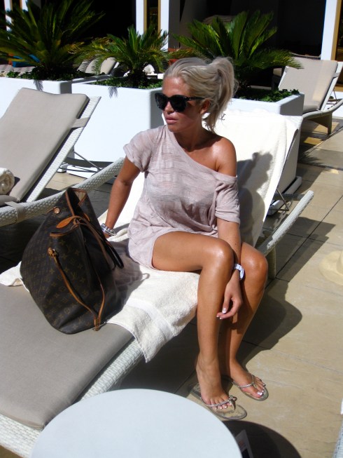 SUNBATHING OUTFIT; KNITTED DRESS / H&M, BAG/ LOUIS VUITTON AND FLIP FLOPS ZARA.