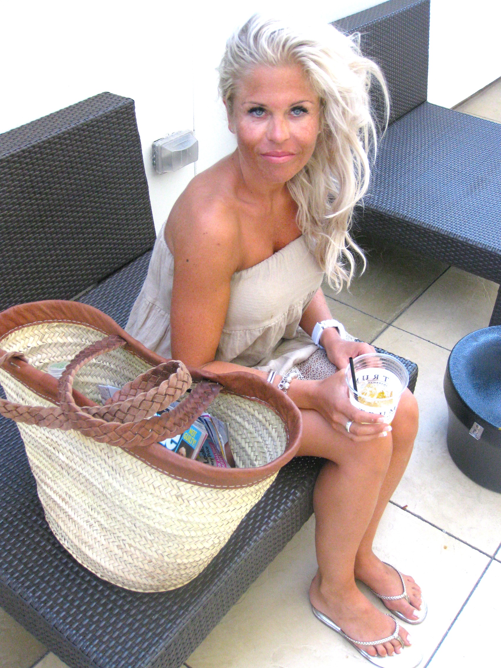 POOL MUST HAVES: BRIMMED HAT AND CHIC FRENCH CONNECTION BAG WITH LEATHER TRIMMINGS…