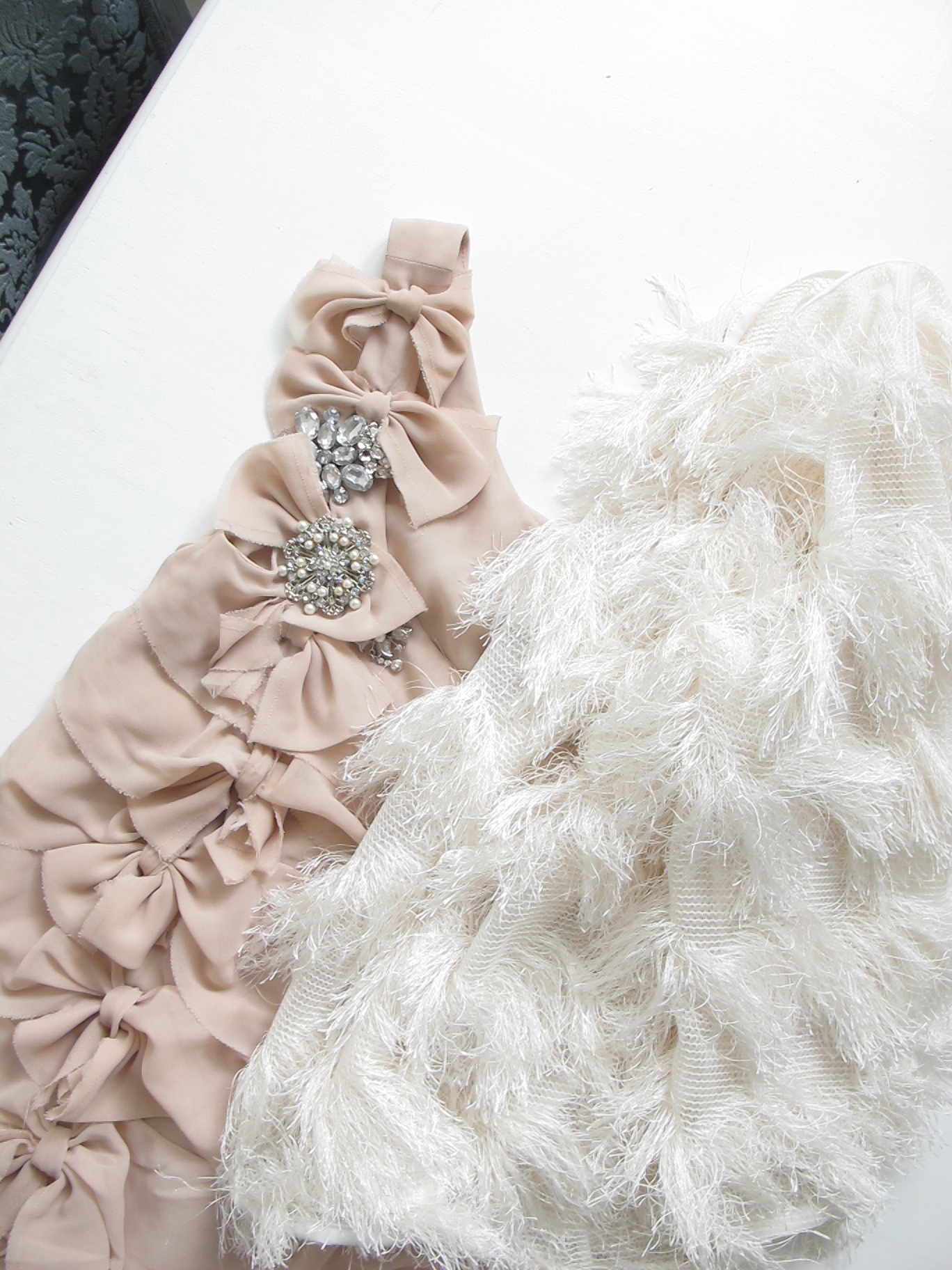 PARTY OUTFIT; DRESS THAT I PIMPED WITH SOME OLD BROOCHES FROM HERE AND FURRY JACKET FROM HERE.