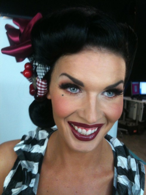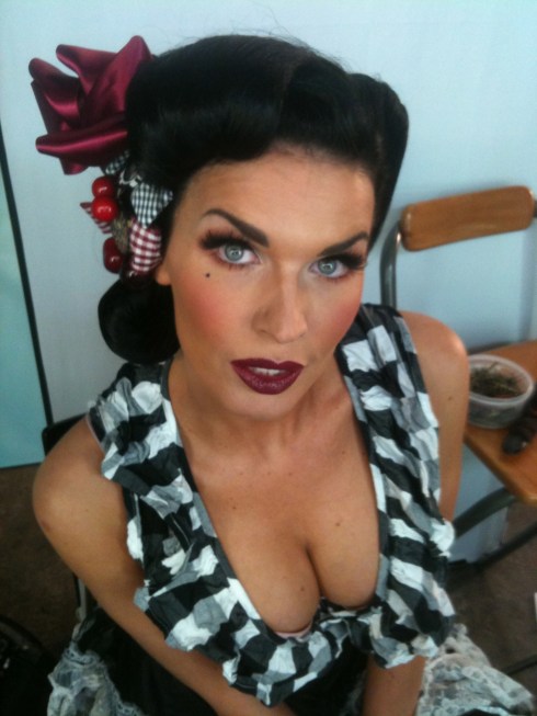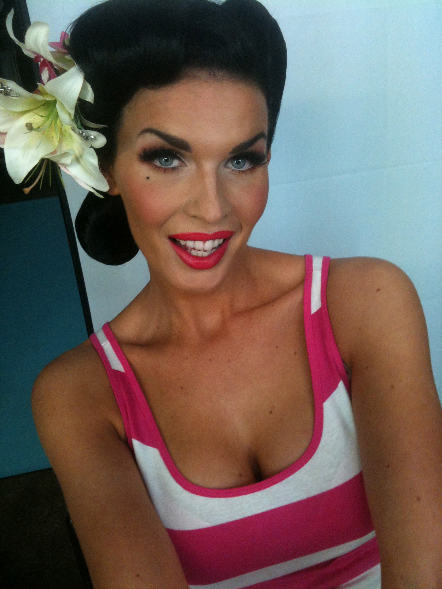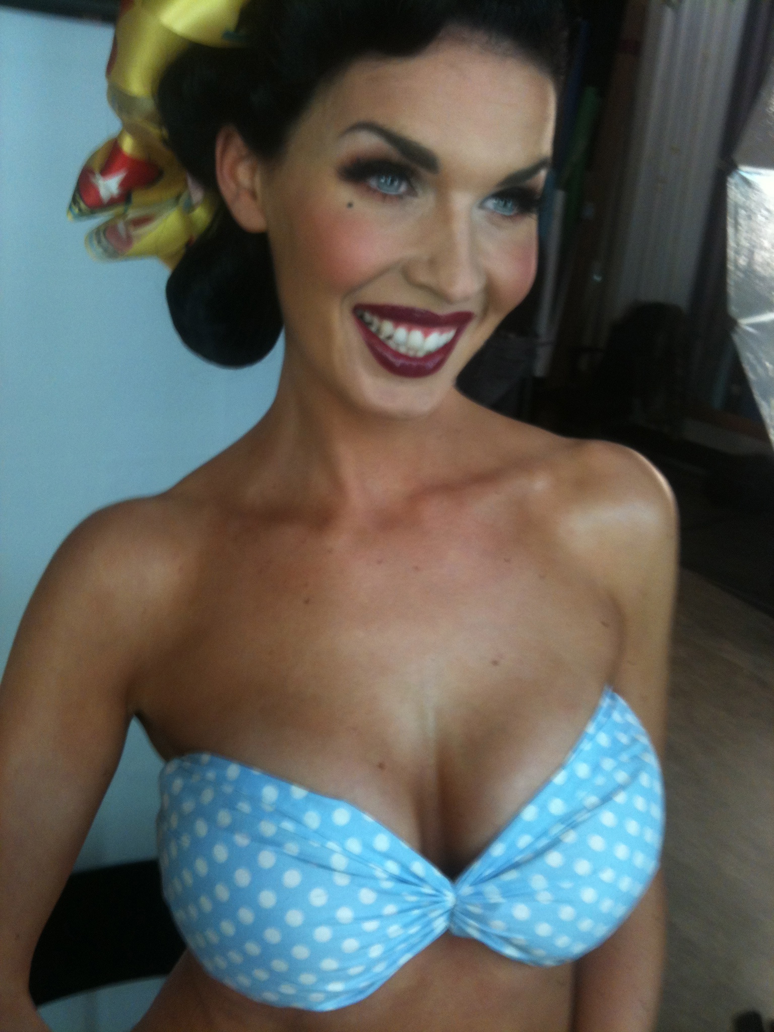 BUBBLY AND VERY PIN UP PERSONALITY SINI TARKKINEN IN BEHIND THE SCENES PICS. PICTURES TAKEN BY MY PHONE. MAKEUP AND HAIR BY ME.