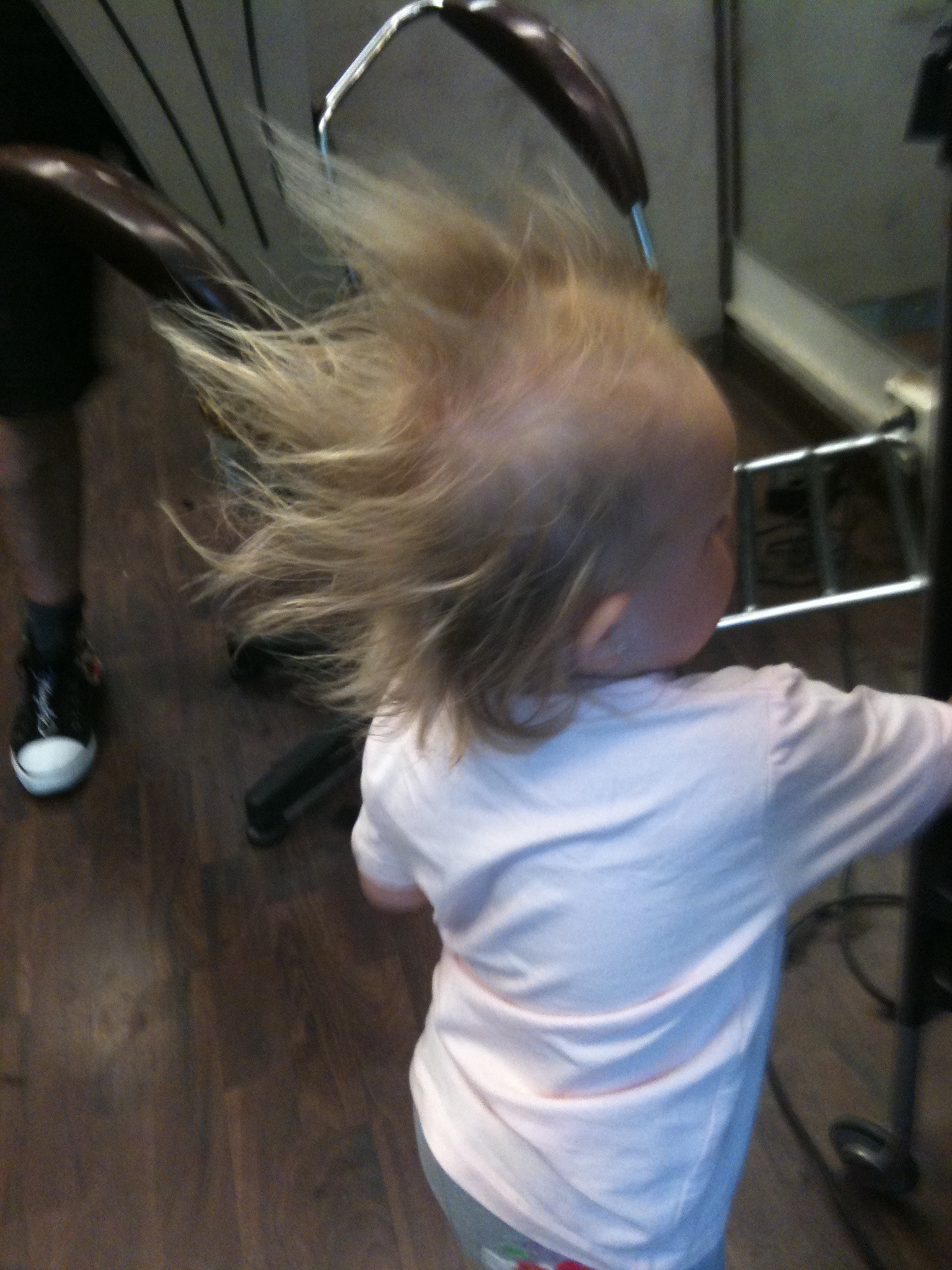 THEN I WENT TO DELIVER PACKAGE AND SAY HI TO REVOLUTION HAIR SWEETHEATRS JANI AND NADINE. AND OF COURSE MY LITTLE SOULMATE VICTORIA AND DADDY ESKO WHO WAS GETTING HIS HAIR DONE.ME AND VICTORIA GOT BORED AND PLAYED HAIRDRESSER GAME…VICTORIA WAS THE CUSTOMER WHO ENJOYED GETTING THIS WILD BABY-MOHAWK HAIRDO BY ME AS I WAS THE HAIRDRESSER…..