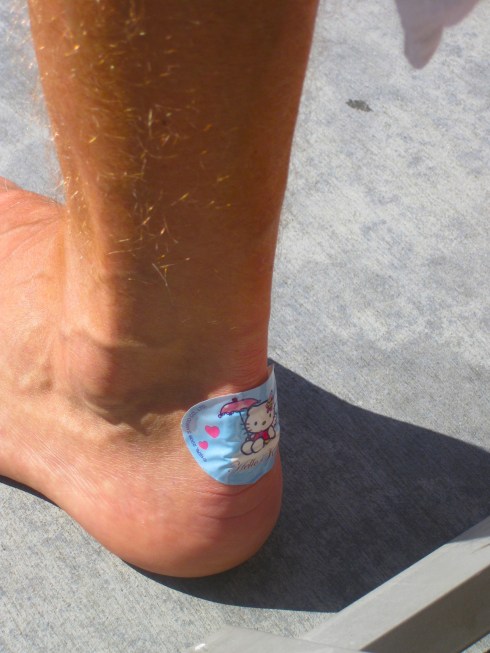 MY LOVE GOT ABRASION FROM NEW PAIR OF SHOES, BUT NO WORRIES….I FIXED IT WITH STYLISH HELLO KITTY BANDAGE….SO CUTE!!!!