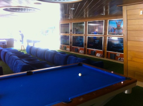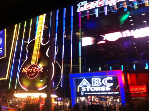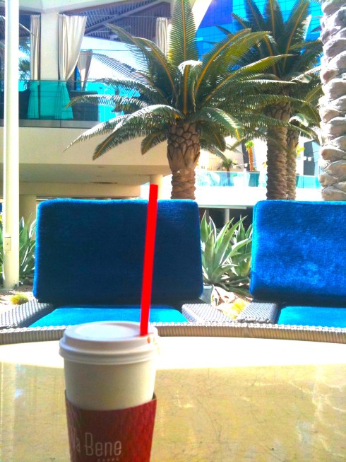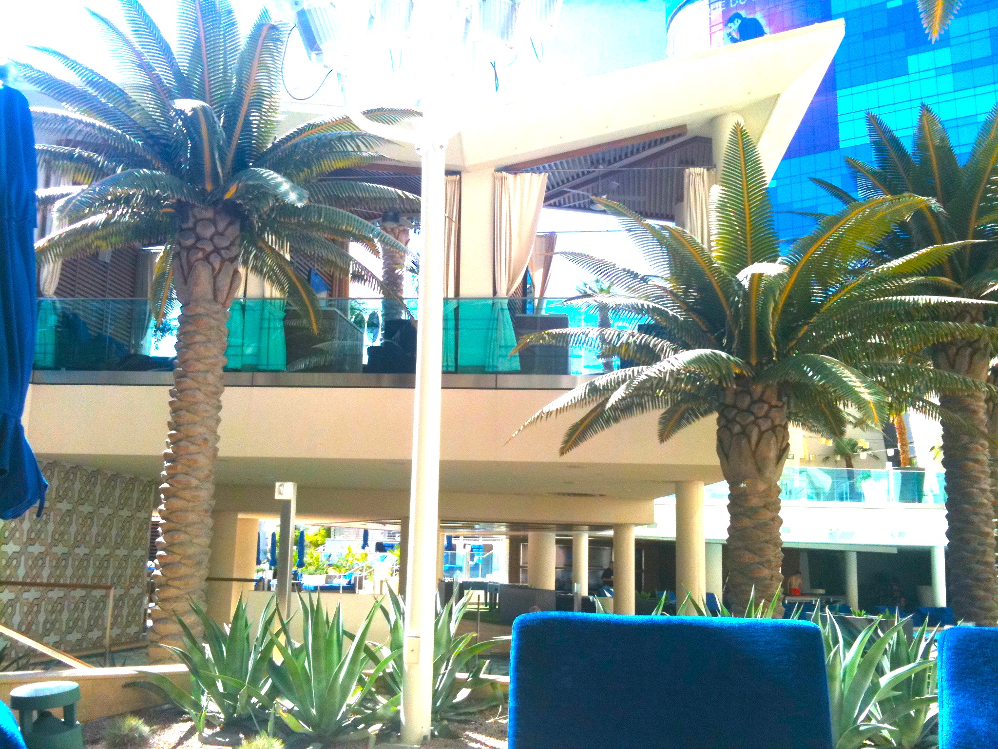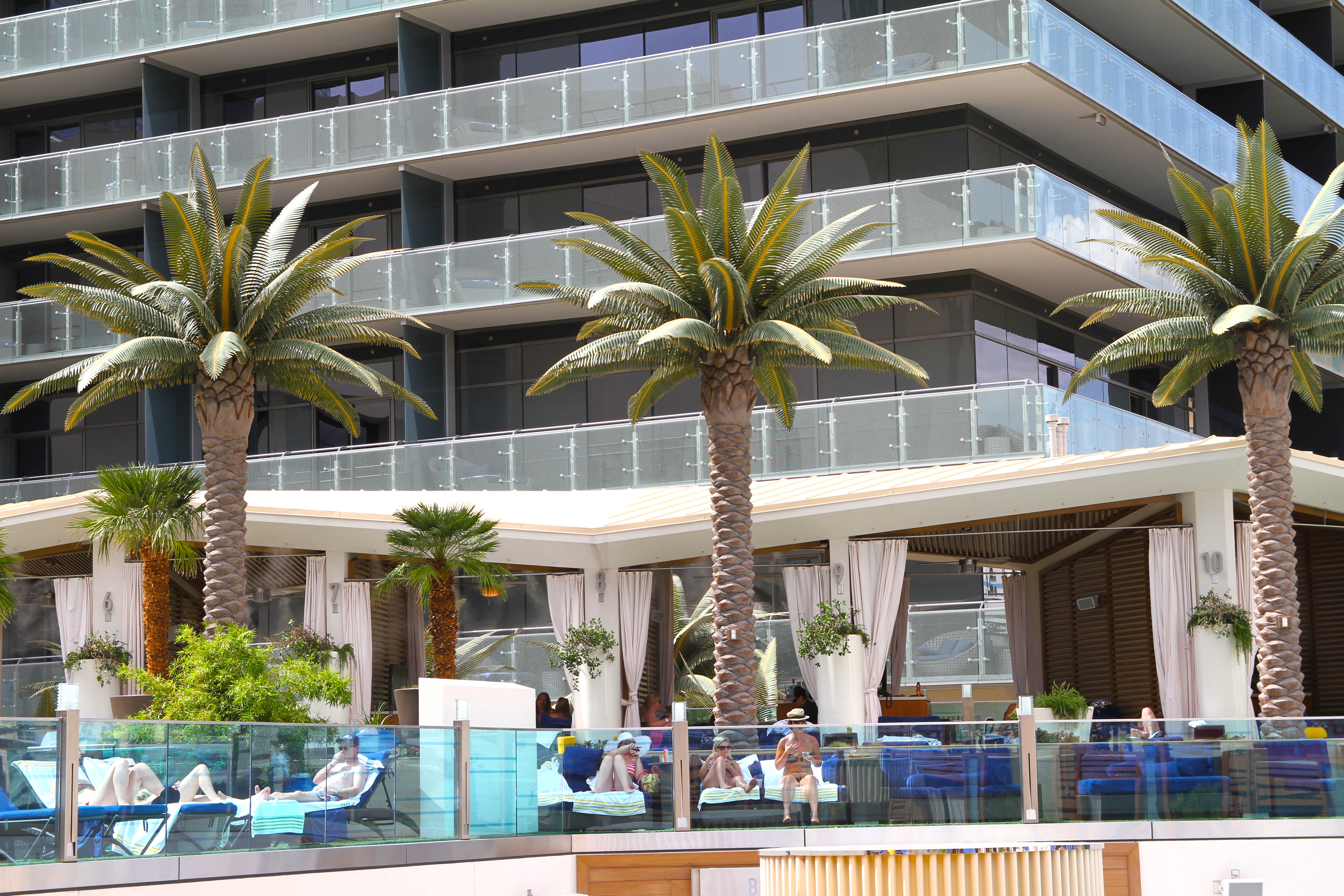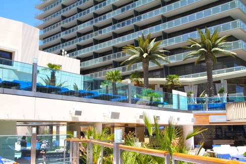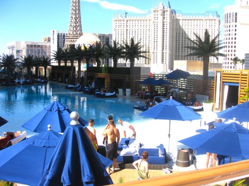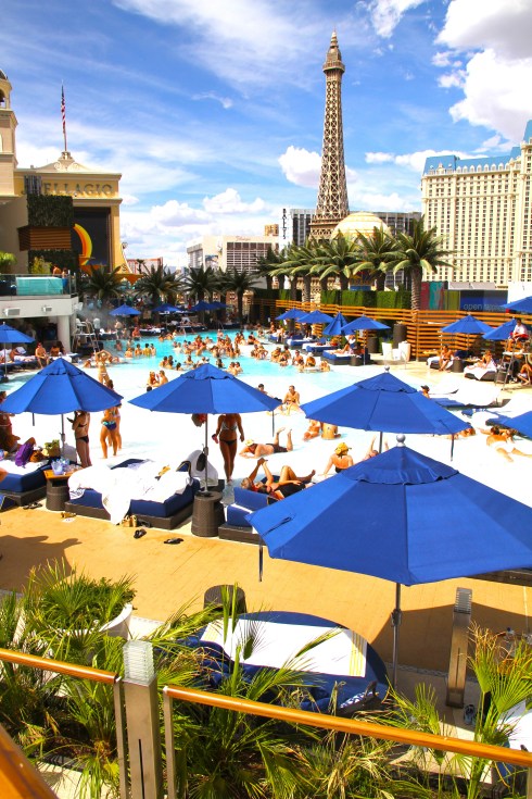 THE VIEW IS FROM OUR BALCONY, THERE IS ONE OF THE POOL AREAS, THE PARTY POOL WHICH IS THE COOLEST DAY AND NIGHTCLUB CALLED MARQUEE…WHICH IS ALSO POPULAR CELEBRITY HOT SPOT….